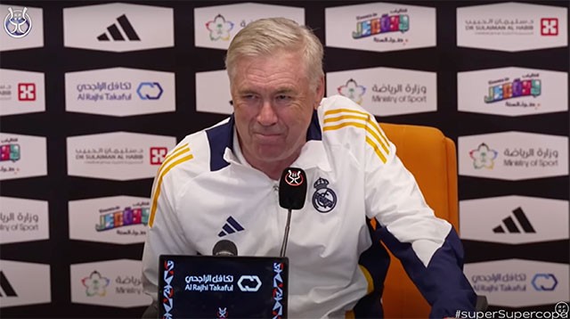 安切洛蒂入场时带着微笑,显得轻松自信。他坦言,球队状态良好,全队备战情况良好,斗志高昂。本赛季已是皇马第三场决赛,但他强调每场比赛都是新的挑战,球队充满期待。上一场比赛中表现出色的贝林厄姆身体已完全康复,状态正佳,备战西超杯决赛。